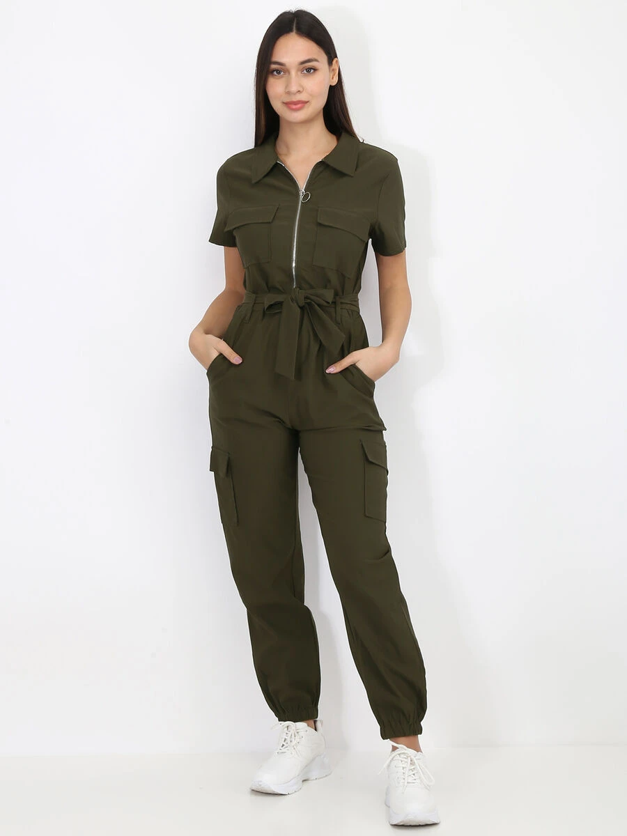 Combinaison pantalon cargo à zip et ceinture à nouer.