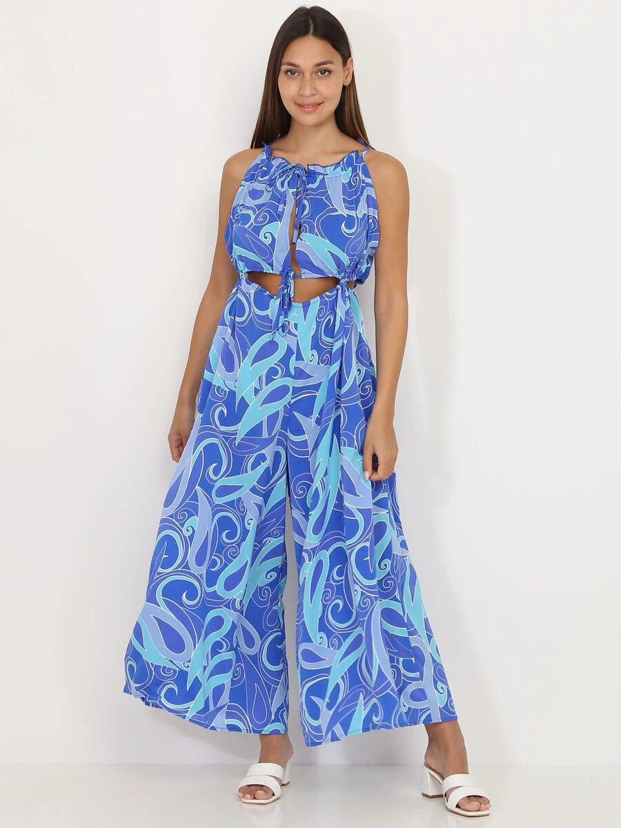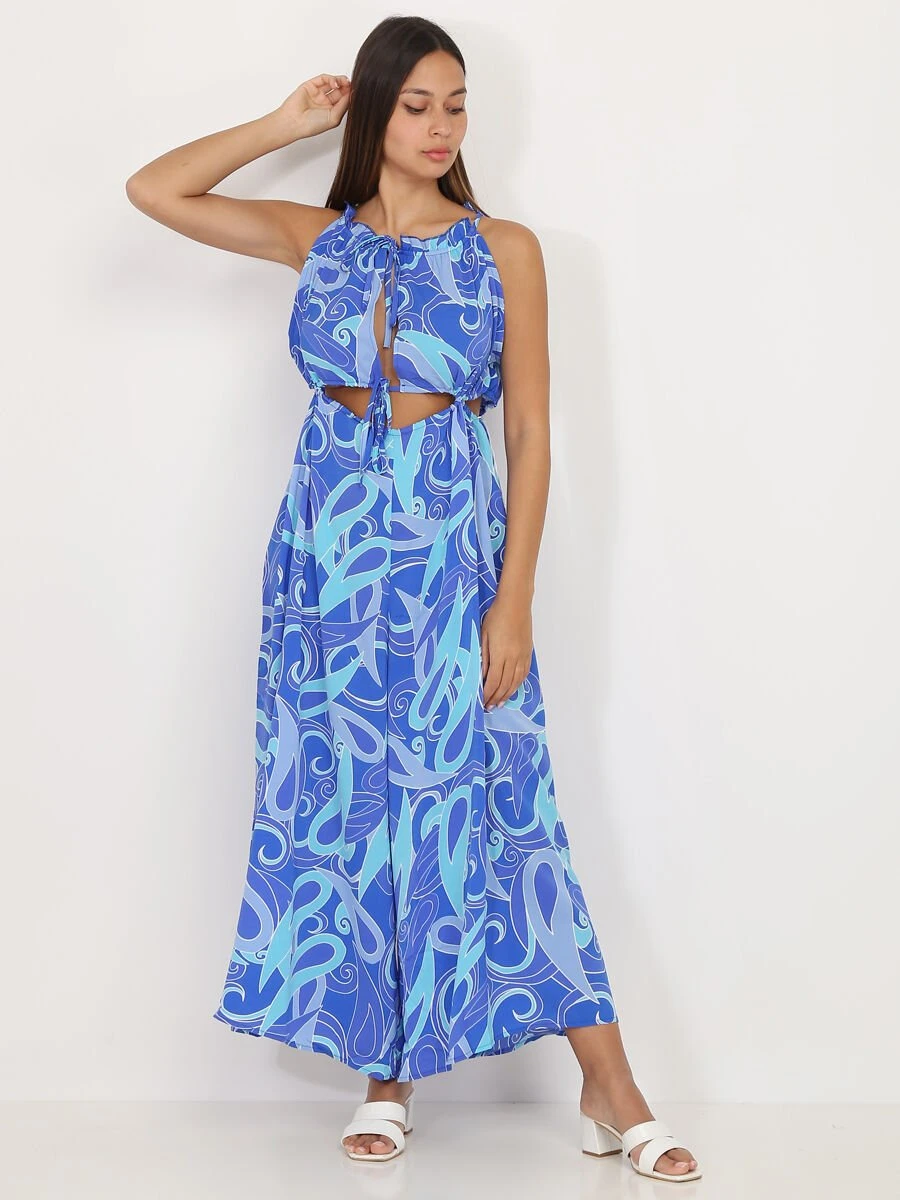 Dotée de deux lanières à nouer devant et d’un élastique à la taille.