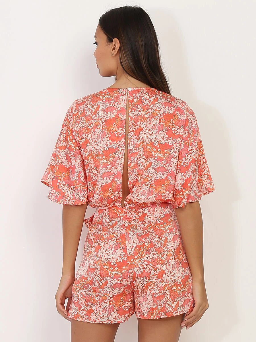 Combinaison short à effet portefeuille avec imprimé fleuri.