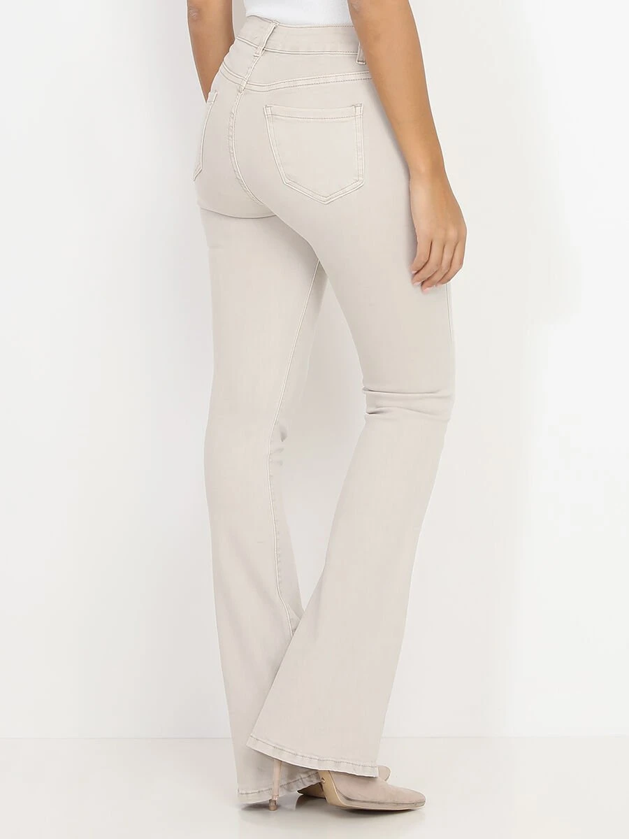 Jeans moulant et flare à taille mi-haute.