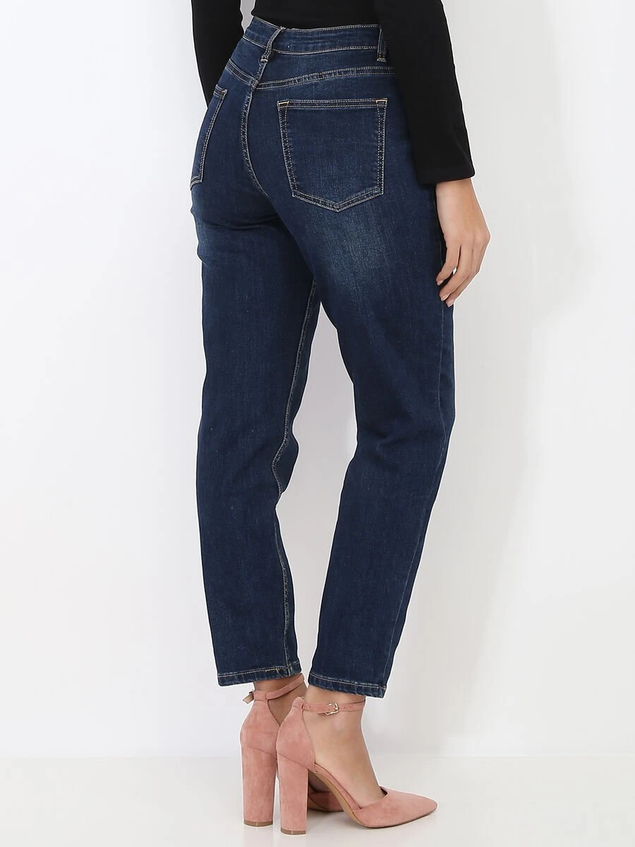 Jeans mom fuselé avec fermeture zippée et bouton.
