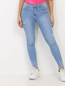 Modèle avec petites éraflures et effiloché aux chevilles.