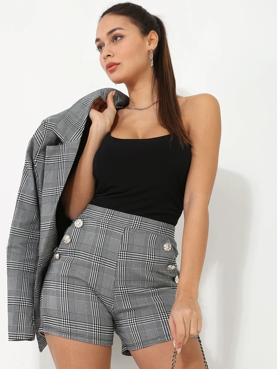 Short taille haute à motif Prince-de-Galles.