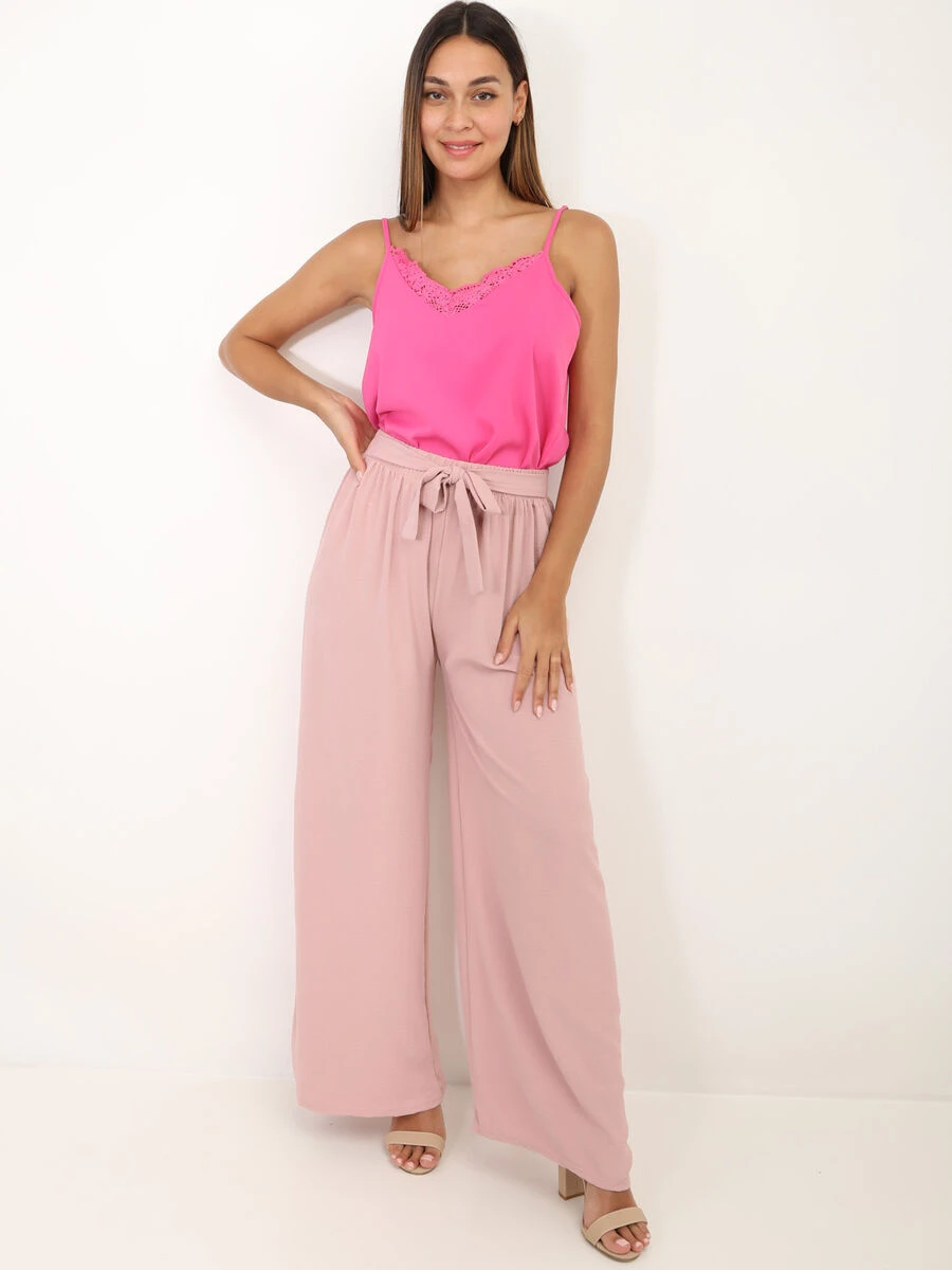 Top léger avec col et dos en V à dentelle.